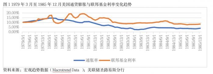 在治愈长期困扰美国经济的高通胀问题方面,沃尔克主席确实取得了非凡成就。沃尔克于1979年8月6日至1987年8月11日期间担任联储主席。他刚上任时,以消费者价格指数测算的通货膨胀率高达11.84%(为1975年1月以来的新高),联邦基金利率为10.72%。当年11月4日,伊朗发生革命,德黑兰大学生扣押了57名美国外交官和公民,事件导致美国和伊朗关系交恶,国际市场上原油价格暴涨,增加了美国国内通胀压力。1980年3月,美国通货膨胀迅速升至14.59%,为1948年以来的最高纪录。在沃尔克主席主导下,联邦基金利率(实际)由他上任时的10.72%被推高至1980年3月末的19.85%。即使后来通胀压力整体减缓,如1981年7月降至10.77%,而联邦基金利率仍维持在21.09%(7月1日)。1981年11月之后,美国通货膨胀彻底告别了双位数时代,而联邦基金利率直到1983年1月2日才降至个位数。